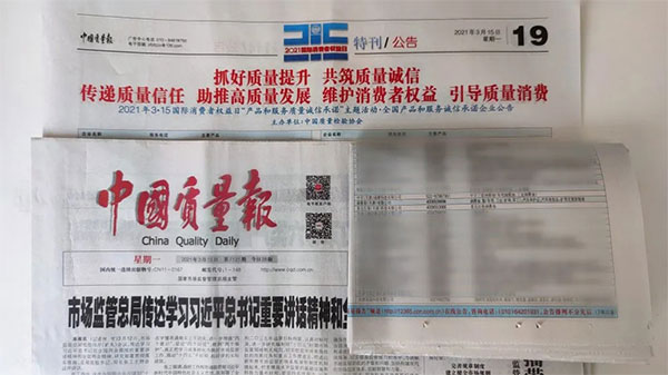 《中國質(zhì)量報(bào)》、《中國消費(fèi)者報(bào)》、中國經(jīng)濟(jì)網(wǎng)、中國質(zhì)量網(wǎng)、中國消費(fèi)網(wǎng)等多家權(quán)威媒體均予以集中展示和公告。不僅如此,公司還獲得了“全國質(zhì)量誠信先進(jìn)企業(yè)”的榮譽(yù)稱號(hào),這是需要經(jīng)過中檢協(xié)長達(dá)三年的全方位監(jiān)督檢查合格才能獲得的榮譽(yù)稱號(hào),其含金量可見一斑!