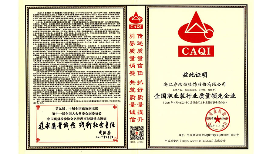 喬治白先后榮獲中國(guó)名牌產(chǎn)品、中國(guó)職業(yè)裝十大領(lǐng)軍企業(yè)、全國(guó)守合同重信用單位、國(guó)家級(jí)綠色工廠(chǎng)、浙江省智能工廠(chǎng)等榮譽(yù)稱(chēng)號(hào)。作為全國(guó)標(biāo)準(zhǔn)化工作先進(jìn)單位,喬治白積極參與標(biāo)準(zhǔn)化工作,先后參與《職業(yè)裝檢驗(yàn)規(guī)則》、《襯衫》、《女西服、大衣》等9項(xiàng)國(guó)家標(biāo)準(zhǔn)的起草與修訂工作,《全毛襯西服》行業(yè)標(biāo)準(zhǔn)起草。