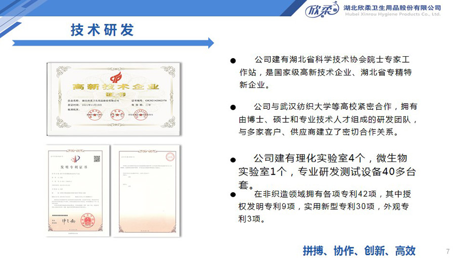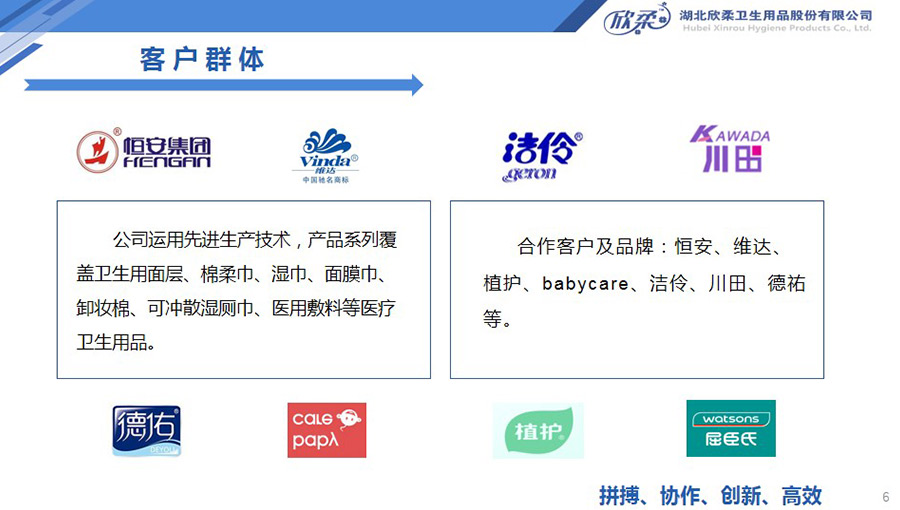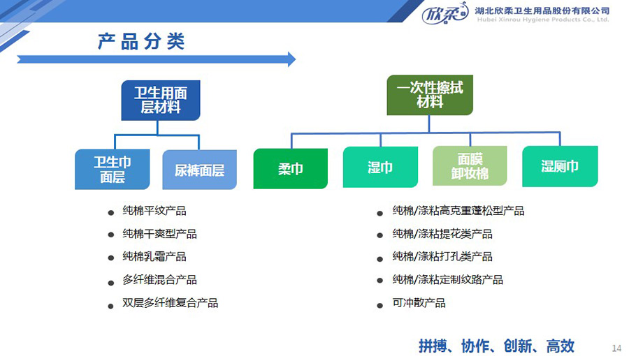 欣柔是以一次性醫(yī)衛(wèi)及生活用非織造材料為主導(dǎo),同時(shí)集生產(chǎn)銷售醫(yī)衛(wèi)用脫脂纖維和擦拭類終端產(chǎn)品的高新技術(shù)企業(yè),欣柔秉承“人才為本,科技領(lǐng)先,用戶至上”的經(jīng)營理念,努力打造成為一家以研發(fā)創(chuàng)新為驅(qū)動(dòng)力,以功能型、差異化產(chǎn)品為牽引力的專業(yè)醫(yī)衛(wèi)用非織造材料供應(yīng)商及生活用品提供商。