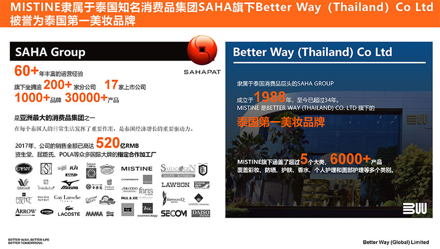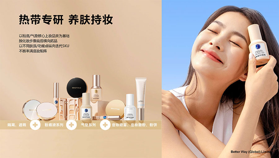 主要產(chǎn)品:MISTINE蜜絲婷防曬,底妝、護(hù)膚、彩妝