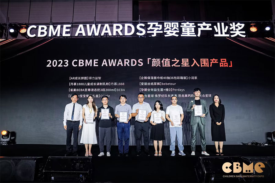 2023年 bebetour品牌在第22屆CBME孕嬰童展,分別獲得“愛麗絲紙尿褲”顏值包裝之星、“牛油果智能搖椅”智能之星的獎項。