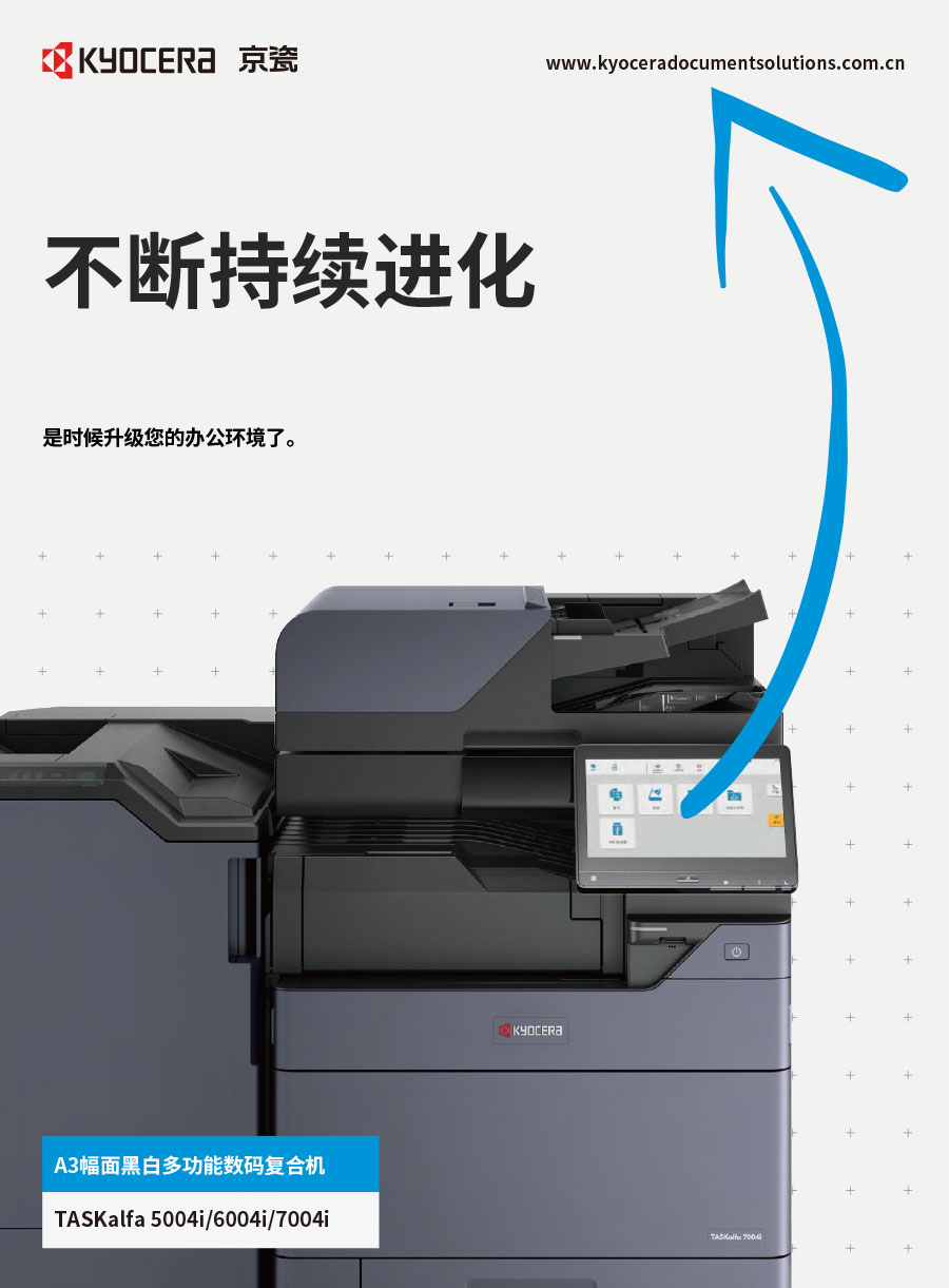京瓷辦公信息系統(tǒng)(中國(guó))有限公司主要負(fù)責(zé)彩色和黑白數(shù)碼復(fù)合機(jī)、彩色和黑白數(shù)碼激光打印機(jī)、生產(chǎn)型彩色噴墨印刷系統(tǒng)、辦公解決方案等系列辦公自動(dòng)化設(shè)備的銷(xiāo)售。京瓷辦公設(shè)備將一如既往延續(xù)ECOSYS理念,始終站在時(shí)代前沿,以科技服務(wù)社會(huì),堅(jiān)持開(kāi)發(fā)更能滿(mǎn)足時(shí)代需求、更為綠色的新銳產(chǎn)品,使用戶(hù)都能夠從中獲得更大的利益。