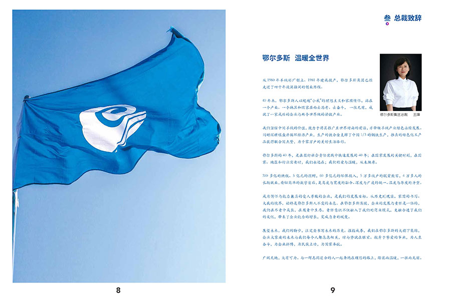鄂爾多斯集團擁有成員企業(yè)100多家,員工4萬余人,羊絨產業(yè)和循環(huán)經濟產業(yè)兩大產業(yè)板塊,以及1436、ERDOS、鄂爾多斯1980、BLUE ERDOS、erdos KIDS 5個知名服裝品牌組成的品牌家族。站在新的發(fā)展起點上,鄂爾多斯集團將繼續(xù)以“立民族志氣,創(chuàng)世界名牌”為使命,遵循“科技綠色、循環(huán)發(fā)展”的經營主線,繼續(xù)發(fā)揚奮發(fā)有為、事在人為的創(chuàng)業(yè)精神,以更加雄厚的經濟實力,更加堅定的發(fā)展步伐、更加高遠的戰(zhàn)略構想,建設具有國際競爭力的幸福企業(yè),實現(xiàn)“溫暖全世界”的宏偉目標。