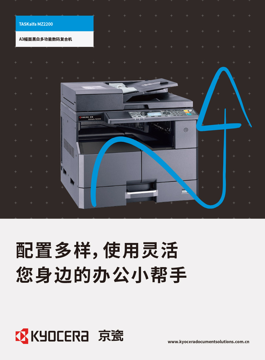 京瓷株式會社由稻盛和夫先生創(chuàng)辦于1959年。“敬天愛人”社訓(xùn)貫徹集團(tuán)各分公司運營中。京瓷辦公信息系統(tǒng)(中國)有限公司主要負(fù)責(zé)彩色和黑白數(shù)碼復(fù)合機(jī)、彩色和黑白數(shù)碼激光打印機(jī)、生產(chǎn)型彩色噴墨數(shù)碼印刷系統(tǒng)、辦公解決方案等系列辦公自動化設(shè)備的銷售。京瓷產(chǎn)品憑借其更低的后期總體使用成本,可靠的長壽命感光鼓,獲得眾多政府、企業(yè)的青睞,在中國的市場占有率逐年穩(wěn)步提升。
