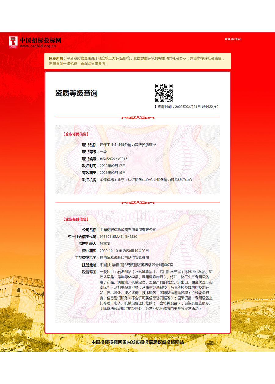 柯賽德斯集團(tuán)公司統(tǒng)一遵循嚴(yán)格的質(zhì)量保證體系,先后通過了武器裝備質(zhì)量管理體系認(rèn)證GJB9001C-2017、ISO/TS16949、IS09001質(zhì)量體系認(rèn)證、1S014001環(huán)境體系認(rèn)證及ISO45001:2018職業(yè)健康安全管理體系認(rèn)證。隨著業(yè)務(wù)領(lǐng)域的不斷擴(kuò)展,目前柯賽德斯集團(tuán)公司先后與多家世界能源、化工方面的巨頭建立了產(chǎn)品服務(wù)、供應(yīng)保障、技術(shù)合作、技術(shù)特別支持單位等方面的戰(zhàn)略合作關(guān)系。今天,柯賽德斯集團(tuán)公司旗下管理著三大潤(rùn)滑油品牌,實(shí)現(xiàn)了經(jīng)營(yíng)上的多元化戰(zhàn)略格局。