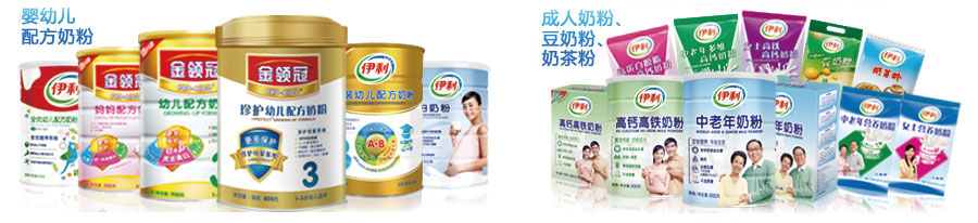主要產(chǎn)品:伊利嬰兒乳粉、成人粉、休閑食品