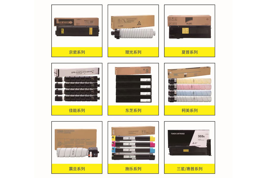 4.信創(chuàng)系列耗材:打印機硒鼓、分離式粉盒、分離式鼓架、復(fù)印機粉筒,涵蓋二十多個國產(chǎn)打印機、復(fù)印機品牌。