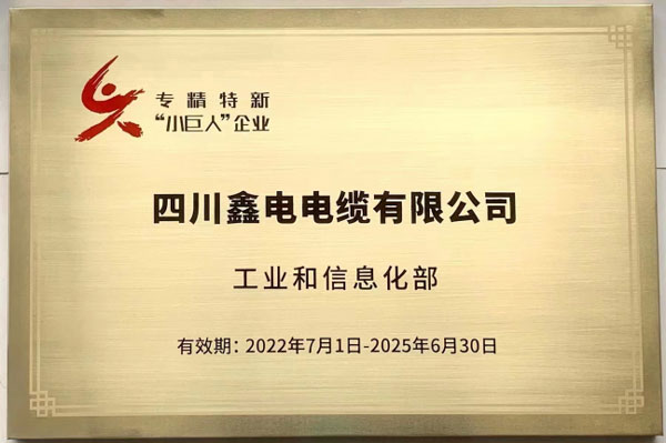 今年九月,工信部公示了第四批國家級專精特新“小巨人”企業(yè)名單,鑫電電纜在電線電纜領(lǐng)域多年深耕,成功入選名單。這是對公司創(chuàng)新能力、技術(shù)水平、行業(yè)地位、質(zhì)量效益等方面及綜合實力的認(rèn)可,將持續(xù)提升公司品牌知名度,增強公司競爭力。