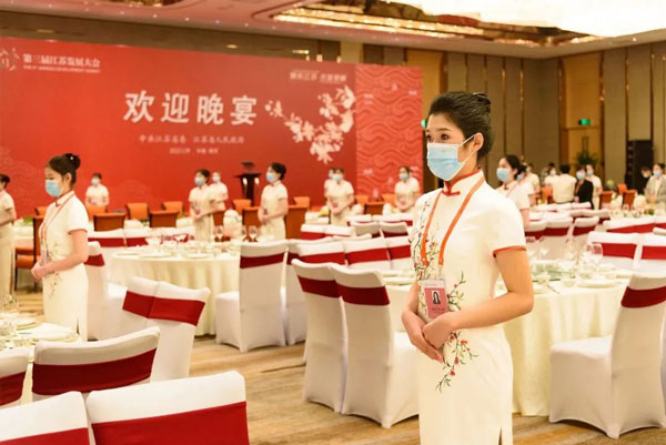 為了保障晚宴接待服務(wù)萬無一失,集團(tuán)從金陵飯店股份有限公司、江蘇金陵旅游投資管理集團(tuán)有限公司、南京金陵酒店管理有限公司所轄酒店抽調(diào)優(yōu)秀的廚師、服務(wù)人員,大部分人員具有前兩屆大會(huì)晚宴積累和沉淀的豐富經(jīng)驗(yàn),組成了“以老帶新”的接待服務(wù)團(tuán)隊(duì),并針對(duì)本次晚宴的特點(diǎn)進(jìn)行了嚴(yán)格的專業(yè)培訓(xùn)和全要素演練。在兄弟單位鼎力支持和團(tuán)結(jié)協(xié)作下,較短的時(shí)間內(nèi)完成了從菜單落實(shí)、餐具準(zhǔn)備、統(tǒng)一制服,到場(chǎng)地布置、流程設(shè)計(jì)、物資采購(gòu)等一系列工作。憑著精湛的技藝和踏實(shí)的作風(fēng),在宴會(huì)當(dāng)晚,菜肴出品簡(jiǎn)約精致,宴會(huì)流程順暢規(guī)范,接待服務(wù)自信從容,進(jìn)一步擦亮了“金陵”金字招牌,彰顯國(guó)企責(zé)任擔(dān)當(dāng)。