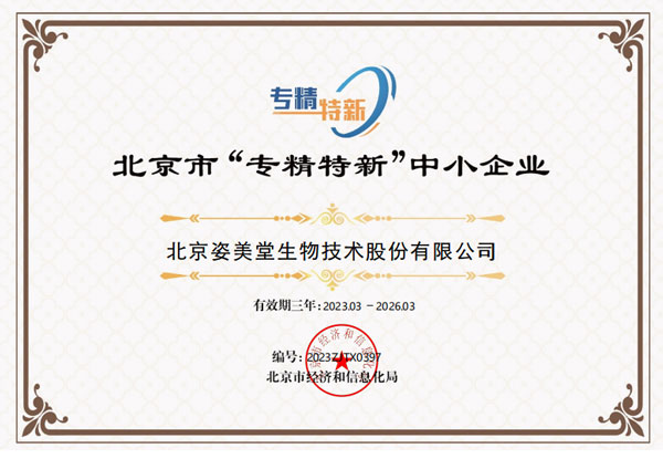 此次獲評認(rèn)定為北京市“專精特新”中小企業(yè),是對姿美堂高質(zhì)量可持續(xù)發(fā)展的又一次全面性檢閱,也是對姿美堂14年來精耕細作、由科技“制造”向匠心“質(zhì)造”奮力進階的高度認(rèn)可,充分反映了姿美堂在企業(yè)創(chuàng)新能力、關(guān)鍵核心技術(shù)的突破以及質(zhì)量效益等方面的不懈努力與優(yōu)異成績。
