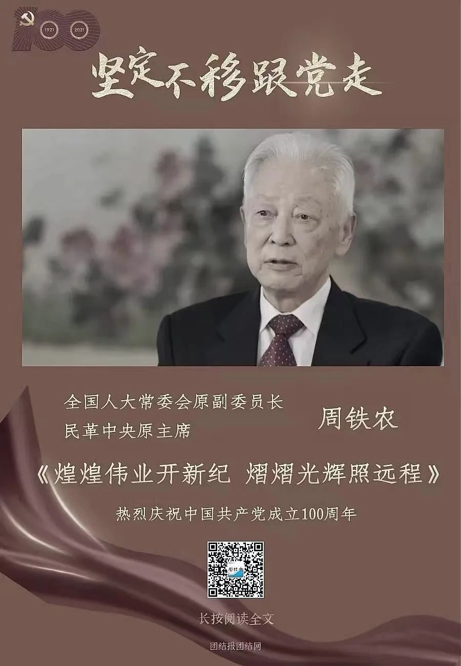 此時(shí)此刻,我們深切緬懷周鐵農(nóng)主席!“團(tuán)結(jié)報(bào)團(tuán)結(jié)網(wǎng)”特別刊發(fā)周鐵農(nóng)晚年接受本報(bào)記者專訪的文章《煌煌偉業(yè)開(kāi)新紀(jì) 熠熠光輝照遠(yuǎn)程——專訪民革中央原主席周鐵農(nóng) 》(首發(fā)于2021年6月29日),以表達(dá)我們的深切悼念和緬懷敬仰之情。