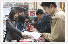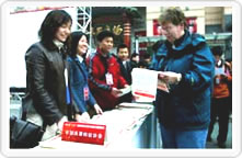 國家質檢總局組織的2004年3·15咨詢活動 現(xiàn)場掠影(圖為一位外國友人在接過 中國質檢協(xié)會人員散發(fā)的“3·15”國際 消費者權益日宣傳材料,連說“OK!OK!”) |