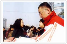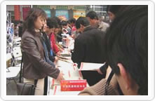 國家質檢總局組織的2004年3·15咨詢活動 現(xiàn)場掠影(圖為:北京市民們和來京旅游者 踴躍索取中國質檢協(xié)會工作人員散發(fā)的3.15 國際消費者權益日宣傳材料) |