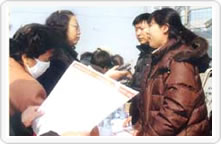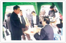 國家質檢總局組織的2003年3·15咨詢活動 現(xiàn)場掠影(圖為:國家質檢總局產品質量申訴 處理中心和中國質檢協(xié)會工作人員 在咨詢現(xiàn)場發(fā)放資料) |