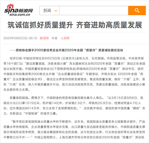新浪網(wǎng):筑誠信抓好質(zhì)量提升 齊奮進(jìn)助高質(zhì)量發(fā)展——質(zhì)檢協(xié)會(huì)攜手2000家優(yōu)秀企業(yè)開展2020年全國“質(zhì)量月”質(zhì)量誠信倡議活動(dòng)